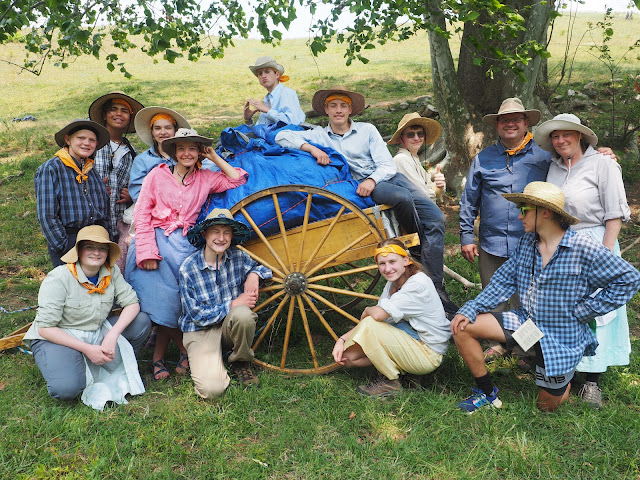 Hmm...not sure what happened to mine and Lee's family picture! After the testimony meeting we all got pictures then headed out to the pickup point to get our stuff and head out. On the way home we stopped at a gas station and it was really weird going inside and with wearing our "pioneer" clothes.