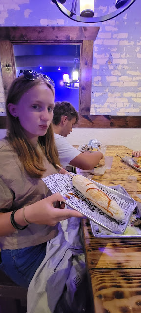 We drove to Jackson Hole for dinner at Bubba's BBQ. Shanna spilled some water which we were laughing about. And then I tried to help her and my cuff knocked over my cups. Oops!