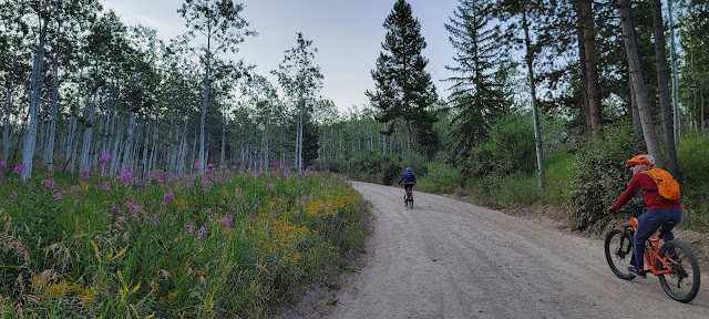 We headed out on our bike ride. Mentally I wasn't prepared for the first half. I didn't realize it was up a gravel road. I thought we were riding to the trail, but the road kept going and going. I found out the the road was part of the ride. We were slow going but finally made it up. I liked the actual trail riding much better.
